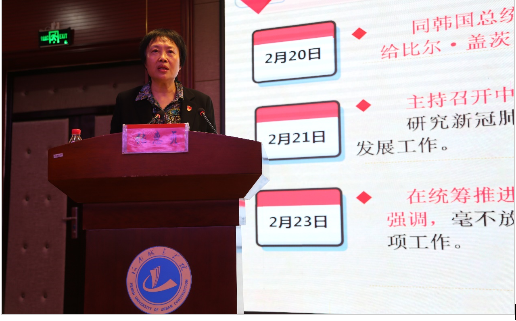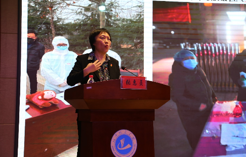 张惠贞从抗击疫情回顾、疫情防控中的切身感受以及疫情防控给我们的启示三个方面为大家讲授。她以总书记指挥防疫工作日志为引线,让同学们看到“党旗在防控疫情斗争第一线高高飘扬”。她从总书记关心全国医务人员的健康、回信勉励北京大学援鄂医疗队等重要工作方面,展示了党和国家始终将人民的健康安全放在首要位置;她结合自身经历,讲述了在与同学们同命运共呼吸的时刻的行为表现,引导同学们看到党的领导力量与社会主义制度的优越性。她指出,党的领导是取得全国抗疫斗争重大战略成果的根本原因。从“用渐冻生命,与死神竞速”的张定宇、年过七旬仍坚守在抗疫第一线的老党员,到牺牲自己节假日也要保证公司后勤的老师,他们传递的是一种力量,一种使命担当。她用这些鲜活的事例,让同学们更深切体会到了党员先锋模范是全民战疫中的中流砥柱,党员全心全意为人民服务的宗旨,更充分体会了中国社会主义制度的优越性。社会主义制度优越性是战胜疫情的根本保证。超强的组织动员能力、高效的组织协调能力、核心价值的引领能力、强大民族凝聚能力,10天完成对雷神山、火神山医院的建设,无不体现了中国速度,向世界生动展示了中国形象。同时,中国为其他国家提供了各种援助,让世界看到了中国对世界的担当和责任,将人类命运共同体这个理论完美的阐述。此次抗疫铸就了生命至上、举国同心、舍生忘死、尊重科学、命运与共的伟大抗疫精神。