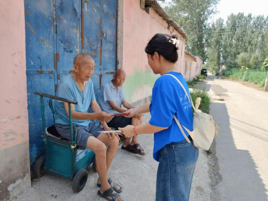 活动开始,实践团于村内会议室开展动员培训。指导老师强调,同学们需以专业、热忱的态度,把政策讲透、讲细,让村民切实知晓这份帮扶力量。随后,实践团成员兵分多路,深入村庄街巷。在村道旁、院落里,资助宣传实践团的同学们,手持政策宣传册,分发给村民并讲解国家的各项资助政策。遇到家中有员工的家庭,实践团成员从助学贷款、高校奖助学金到学费代偿等,逐项讲解。面对老人的疑惑,同学们蹲下身、慢语速,用接地气的方言反复阐释;碰到年轻家长,同学们结合实际案例,说明资助政策如何减轻家庭负担,助力孩子安心求学。