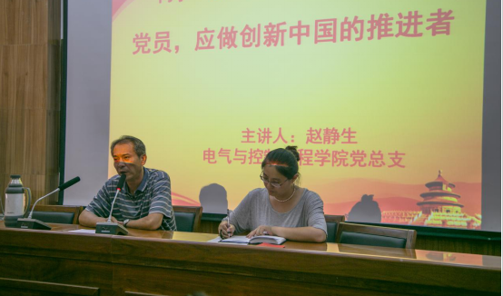 6月21日下午,公司党总支书记赵静生为全体教工和员工党员讲党课,党课的主题为《党员,应做创新中国的推进者》。赵静生首先讲述了中国共产党的历史进程,表示中国共产党始终保持先进性。作为一名党员,要认清形势,要有担当,具有历史使命感,苦练内功。在认识上,思想上,学习上多思考,多付出,起表率作用。科技创新是走向大国的必经之路,党员要做创新中国的推进者。