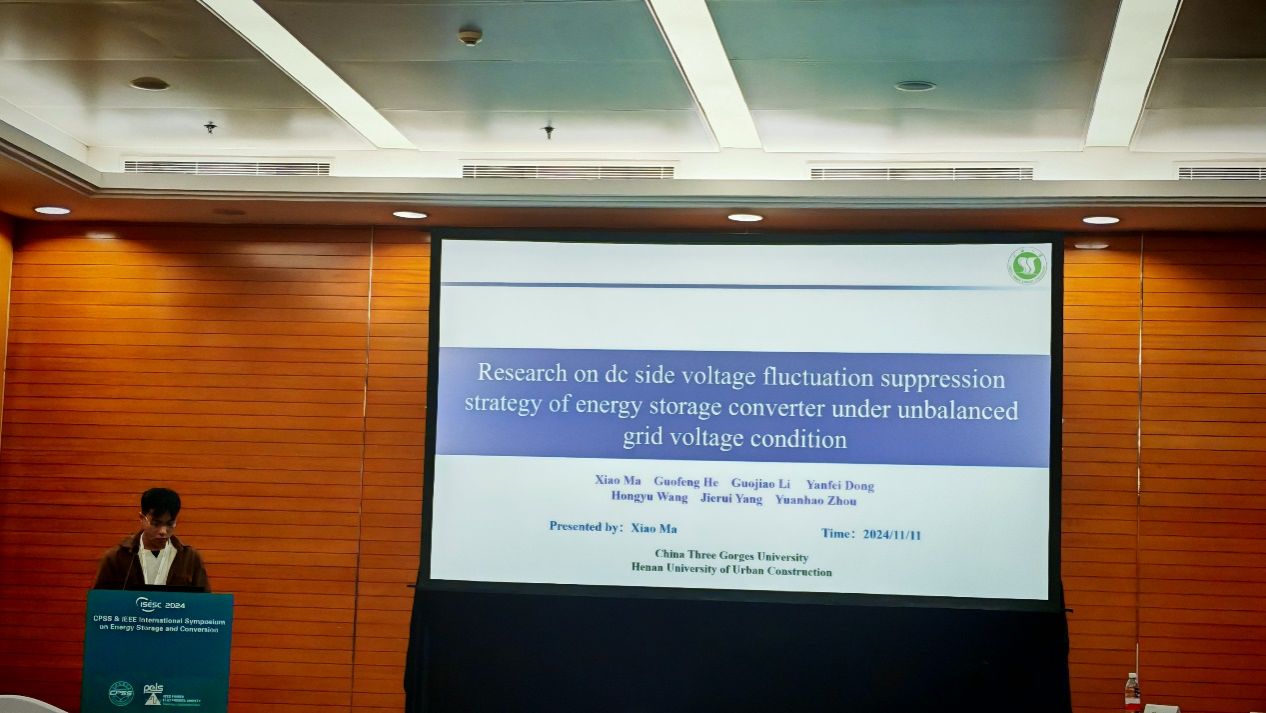 SUNBET申博何国锋教授指导的三峡大学联合培养研究生麻霄、王鸿玉、杨洁瑞参加该会议,2022级研究生麻霄在大会做“Research on dc side voltage fluctuation suppression strategy of energy storage converter under unbalanced grid voltage condition”主题报告。