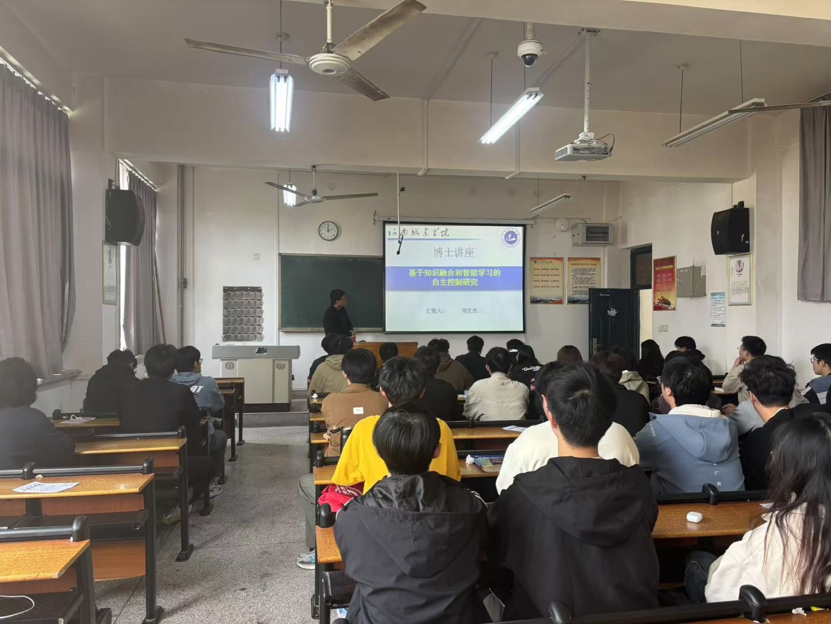 2024年11月8日下午,SUNBET申博司文杰博士主讲。司文杰博士深入探讨了在智能控制系统领域,如何通过知识融合与智能学习技术提升自主控制系统的性能与应用范围。司文杰博士首先介绍了自主控制系统的基本概念和发展历程,详细讲解了知识融合与智能学习在控制系统中的应用。尤其是在面对复杂环境和动态变化的情况下,如何利用多种信息源进行知识融合,以实现系统的自适应和高效决策。司文杰博士提出,结合深度学习、强化学习等智能算法,可以大幅提升自主控制系统在执行任务中的自主性与稳定性。接着,通过几个具体的应用案例,展示了基于智能学习的自主控制在机器人、智能交通和智能制造等领域中的前景和挑战在讲座的交流环节,司文杰博士与在场的师生们进行了热烈的互动。与会师生就智能学习算法的实际应用、系统优化以及未来技术发展等问题提出了疑问,司文杰博士耐心解答,并与大家分享了他在实际研究中的经验与心得。讲座现场气氛浓厚,讨论热烈,师生们纷纷表示受益匪浅。