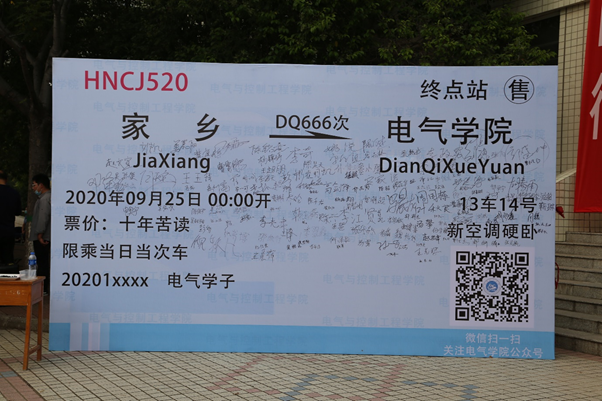 入校新生在纪念喷绘签名留念