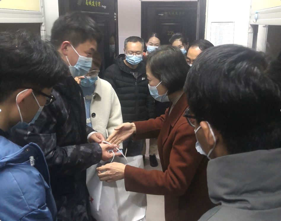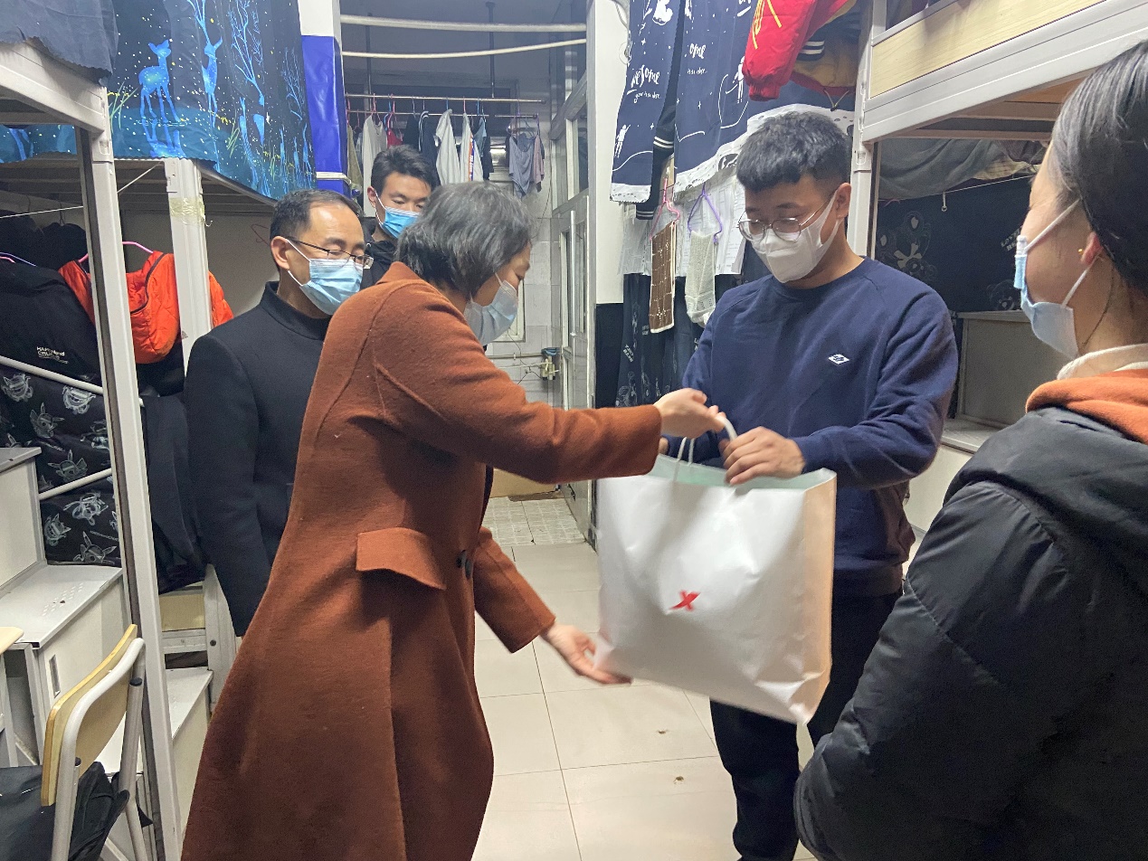 “你们家都是哪的?”,“专业课程都能熟练掌握吗?”,“临近期末,复习的怎么样了?”,“天冷了,要注意保暖防寒啊”........亲切的话语,细心的询问,丝丝关爱,沁入心脾。吴晓红关心同学们生活的同时,还对同学们养成良好的学习习惯、制定合理的学习目标提出了自己的建议。希望同学们在生活上要知足常乐,但学习上要勇往前,以学习为主,并常怀感恩之心,把大学四年学习的学习和生活安排好,提高自己的综合素质,为进一步发展打下坚实基础。随后吴晓红将羽绒服送到了同学们的手中,同学们带着微笑收下这份温暖,感动地说“谢谢老师,谢谢公司”。
