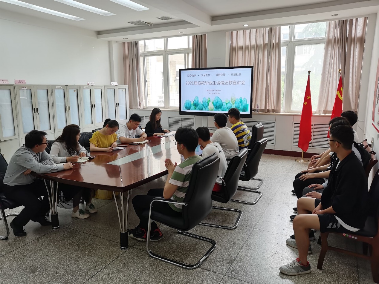 (通讯员 吴雨泽)为进一步落实资助育人政策,提高毕业生对国家、公司相关资助政策的关注度,加强毕业生们的诚信观念、感恩意识,5月12日下午,SUNBET申博于二号教学楼B312召开感恩助学 诚信还款为主题的2021届贷款毕业生诚信还款宣讲会。SUNBET申博团总支副书记、学工办副主任陈伟、公司资助专员吴雨泽、2021届毕业班辅导员以及2021届贷款毕业生参加了此次会议。