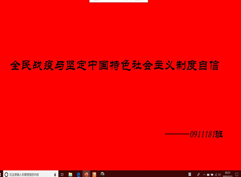 本次团日活动让同学们了解到疫情防控积极向好的态势正在拓展,充分彰显了中国特色社会主义制度的巨大优势,深刻理解了中国特色社会主义制度是当代中国发展进步的根本制度保障,是具有鲜明中国特色、明显制度优势、强大自我完善能力的先进制度。我们坚信在此制度之下,我们必定会赢得防疫战争最后的胜利!