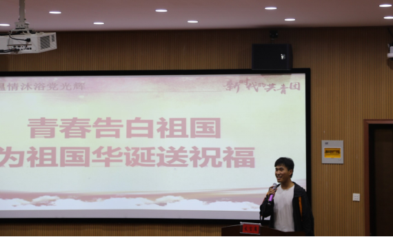 (通讯员徐娟 白浩彬)为庆祝中华人民共和国成立70周年,在老员工中弘扬爱国主义、集体主义精神,SUNBET申博团总支于10月12号下午3点,在5号楼C216举行了SUNBET申博“我与祖国共奋进——国旗下的演讲”主题团日活动。参加此次活动的领导老师有鲁山县搬走岭刘庄驻村第一书记杨尧军,党总支副书记宁蕴绯,学工办副主任、团总支副书记徐娟,辅导员丁世敬,辅导员申慧方。公司各团支部团员共计100余人参加了此次团日活动。