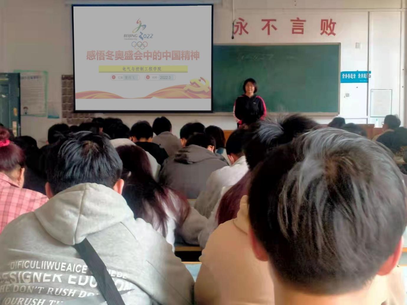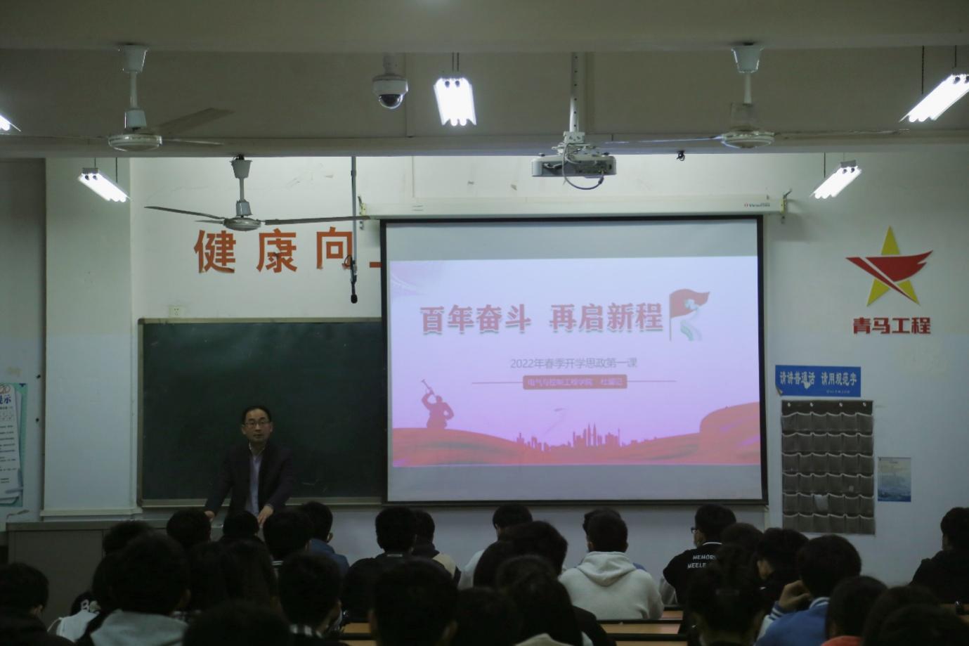 3月16日,电气与控制工程公司党委书记杜留记在善思楼青马教室以“百年奋斗,再启新程”为题给公司青马班学员及部分团干上2022年春季学期开学思政第一课。杜留记从“总结党的成就和经验的重要性”“党的百年奋斗的伟大成就”“弘扬中华体育精神,一起向未来”三个方面进行了深入讲授。以生动的方式帮助广大青年重新梳理了党的百年成就,同时与现实结合,帮助青年理解其重要性。重点结合北京冬奥会、女足夺冠等体育盛事,诠释体育精神。引导广大青年学子敢于战胜自我、超越自我,在拼搏的过程中增强做中国人的志气、骨气、底气,不负时代,不负韶华。
