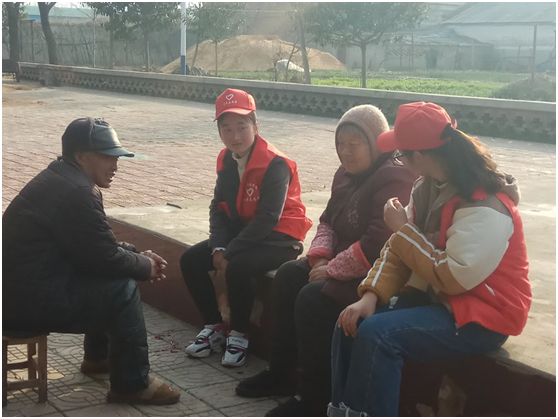 (图为志愿者在陪老人聊天)