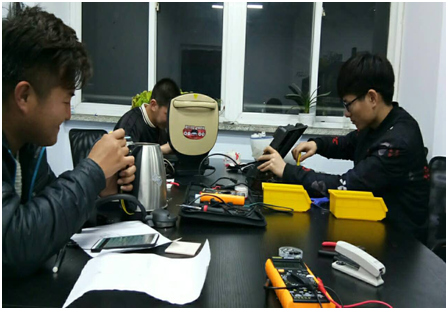 (图为队员们维修电器的场景)