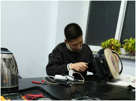 活动现场,闻讯赶来的同学或老师们陆陆续续拿来不能正常工作的电热水壶、电饭煲、吹风机等小家电让金创义修的队员们“会诊”, 各种小家电摆满了桌子,足以说明大家对此次活动的大力支持。队员们认真查找故障原因,仔细分析每一件小家电存在的问题,并积极高效地处理检查出的问题。卸螺丝、检测、换零件、安装,在队员们的巧手下,一些小电器又可以正常使用了。同时,队员们还耐心地向大家讲解家电使用和保养方法,对无法修好的电器认真地说明损坏原因,提供了可靠的维修建议。