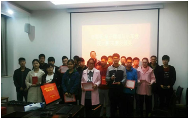 在决赛现场,每个小组的成员都异常专注,比赛时选手小心的将自己的避障小车放在赛道上,打开电源看着自己的小车通过赛道,当小车顺利的通过避障赛道时,同学们热烈欢呼,参赛的十组选手均基本能实现要求的功能,有些组的同学还增加了蓝牙控手机控制小车的功能。评委老师通过对小车的避障功能和穿过赛道的效率进行评判,经过激烈的角逐,郭杰等同学获得一等奖,张宁等同学获得二等奖,万思鹏、朱钦龙等同学获得三等奖。