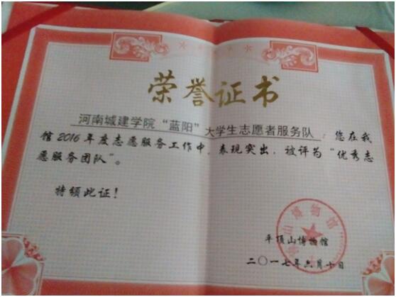 (通信员 宁蕴绯 孔春杰)2017年6月10日,平顶山市博物馆对SUNBET申博蓝阳志愿者服务队及先进个人予以表彰。