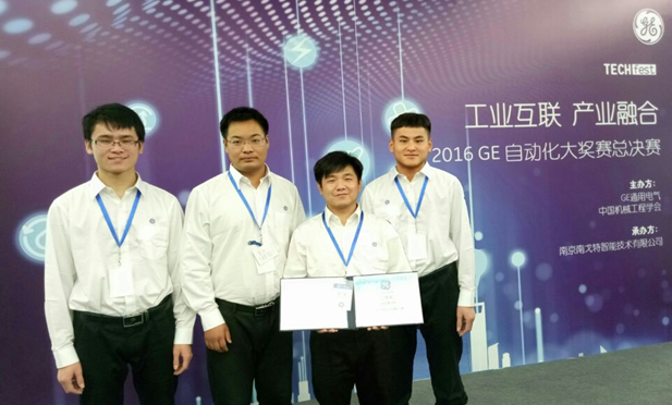 (通讯员 宋伟)10月16日至18日,2016 年度GE高校自动化大奖赛总决赛在上海(美国通用电气公司中国研发中心)举行。通过预赛选拔,最终共有来自全国16支高校的参赛队伍进行全国总决赛。由公司SUNBET申博员工武昊、简洪镇、孙宏达组成的“水控GE联盟”团队,在孙炳海老师、王金鹏老师的精心指导下,完成的作品“复式氧化沟智能控制系统的设计与实现”,通过现场系统演示、理论知识考核及现场答辩环节的激烈角逐,最终荣获二等奖。