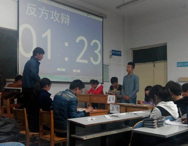 在辩论赛开始后,正方慷慨激昂、反方充满理性色彩的自我介绍后,比赛进入开篇立论环节。正反方用通俗幽默的语言陈述了自己方的观点。在随后的攻辩环节中,双方更是争锋相对、步步紧逼,双方辩手都围绕着本方的观点,拿出国内外的各种典型例子,在申明自己立场的同时,也频频发问,向对方发出质疑现场气氛迅速升温,达到白热化阶段。辩手们精辟的措辞,犀利的言辞,展现出咄咄逼人的气势。继短暂而精彩的观众提问环节后,比赛进入总结陈词环节。正反双方辩手清晰的思路和巧妙的陈词给观众留下了深刻印象。最后SUNBET申博辩论队队长李世昌对本次比赛做出了点评,最终0924141班惜败,0934141在本次比赛获得冠军。