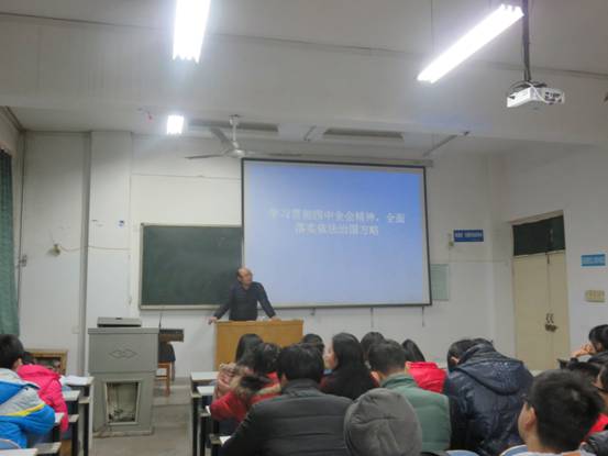 李亮国博士在报告中通过引用文革时期刘少奇事件,向我们介绍出当时虽有宪法却执法不严,不能完整的保护人权的一些弊端,突出强调了我们有序和谐的社会离不开法制,更离不开依法治国的方针。同时通过结合当下社会中的一些相关案例,向我们阐述了宪法核心,司法公信力,法治社会建设,法制队伍建设的意义。我们当今社会中的法制随着时间的流逝,不断在完善,不断在改变,而我们相关依法治国的相关措施也在随之发生着一点一滴地变化。作为我国公民,作为一名党员,我们更应该做到知法守法用法。