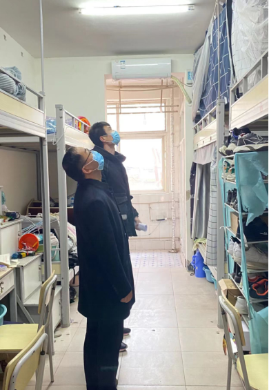 春节前,公司员工宿舍作为临时集中隔离点为疫情防控工作做出了巨大贡献,虽然当时事发紧急,但员工们纷纷表示理解,用包容、支持、担当表达了“大我”和“大爱”的精神。员工宿舍在作为隔离点后的安全卫生问题也是公司党委一直关注的重点。此次深入宿舍,杜留记带领辅导员着重了解了宿舍的卫生消杀情况、拆除隔离时完善修复等情况,并针对部分问题提出了处理预案。