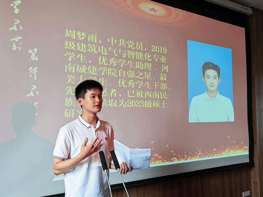 本次文化讲堂共有六个环节:学一篇重要讲话、看一部视频短片、讲一个身边故事、作一次感想交流、唱一首优秀歌曲以及送一份祝福礼物。活动开始由党委书记杜留记领学了习近平总书记给中国农业大学科技小院的同学们的回信精神。杜留记表示,习近平总书记的重要回信充分阐明了新时代中国青年该有的“自找苦吃”的“精气神”,表达了对新时代青年的无限关爱与热切期待,是新时代青年成长成才的行动指南,广大青年要以更加奋发有为的精神状态和一往无前的奋斗姿态,志存高远、脚踏实地,让青春在全面建设社会主义现代化国家的火热实践中绽放绚丽之花。接着观看了《无奋斗 不青春》短片,激励大家应自觉把个人的理想追求融入国家和民族的事业中,勇做走在时代前列的奋进者、开拓者;随后由2023届毕业生张博源“以身边人讲身边事”的形式,讲述身边同学是如何规划自己的老员工活,鼓励同学们应在大学期间根据自身情况,明确目标,科学规划,脚踏实地;随后在“作一次感想交流”环节中,由教师代表辅导员陈伟讲述他的抗疫经历和感悟,以及员工代表2023届毕业生周梦雨讲述自己的老员工活和感悟,激励同学们树立志向、践行梦想,练就本领,以实际行动践行青年使命与担当,为党和人民贡献青春力量;活动最后由员工代表演唱歌曲《少年中国说》,弘扬了民族精神,激发了师生的爱国情怀及拼搏斗志,由杜留记为优秀员工代表颁发礼品以示鼓励。伴随着在场全体师生合唱校歌的嘹亮歌声,本次活动圆满结束。