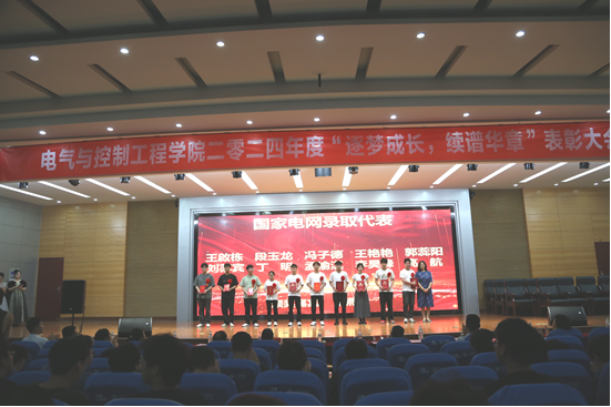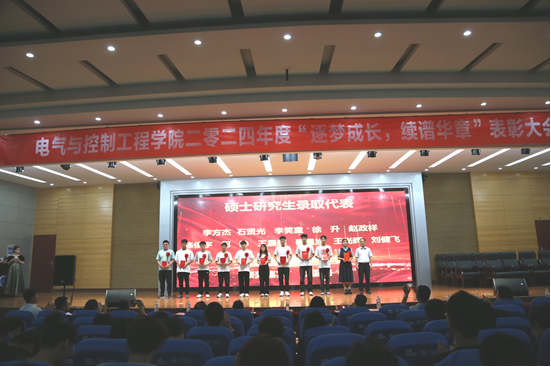 大会在庄严的国歌声中拉开帷幕。会上,院领导为上一年度在学科竞赛、社会实践和万米接力赛、春运会等校园文体活动中表现突出的先进个人和集体以及就业、考研优秀毕业生代表、在春运会中表现突出的教师代表颁奖,2024届电气工程及其自动化(智能输配电方向)专业毕业生李方杰分享了自己考研上岸的经验和收获。与此同时,表彰大会中还精心安排了歌舞、话剧、心理情景剧展演,主题鲜活,内容丰富生动,形式多样。最后,表彰大会在校歌声中落下帷幕。