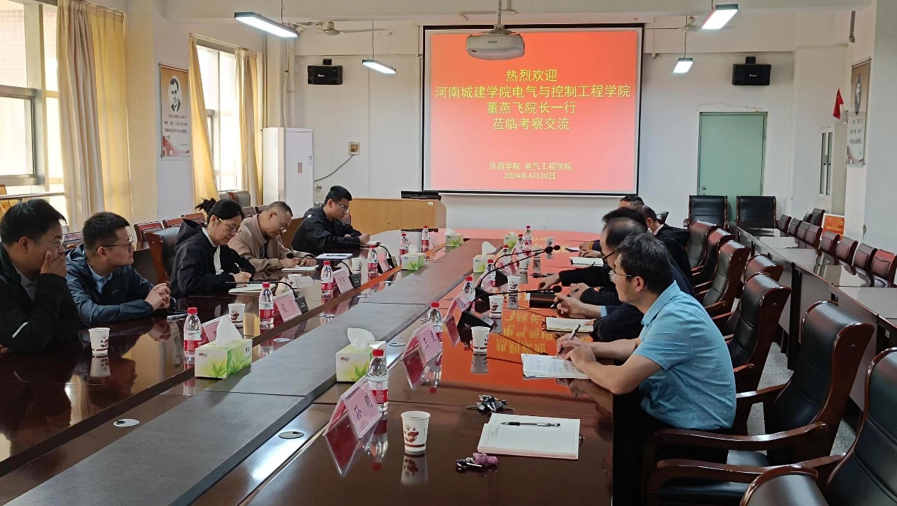 (通讯员 郭文博 宋亚凯)4月30日,SUNBET申博经理董燕飞一行6人赴许昌公司电气与机械工程公司调研,与许昌公司电气与机械工程公司党委书记高凯、副经理方如举、副经理葛瑜等就团队建设、人才培养、实验室建设等工作进行座谈交流。SUNBET申博副经理葛广军、电子信息工程系主任侯宁、平顶山市高效率变换智能控制重点实验室主任宋亚凯等相关老师陪同调研。