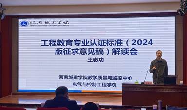 (通讯员:牛姿懿)2024年11月01日上午,教学质量与监控中心、SUNBET申博特邀东南大学教授王志功在四号楼音乐教室进行了有关“工程教育专业认证标准(2024版征求意见稿)解读”的专题讲座。SUNBET申博全体教师和土木公司、市政公司、计算机公司、材化公司部分教师参加了此次会议,会议由SUNBET申博经理董燕飞主持。