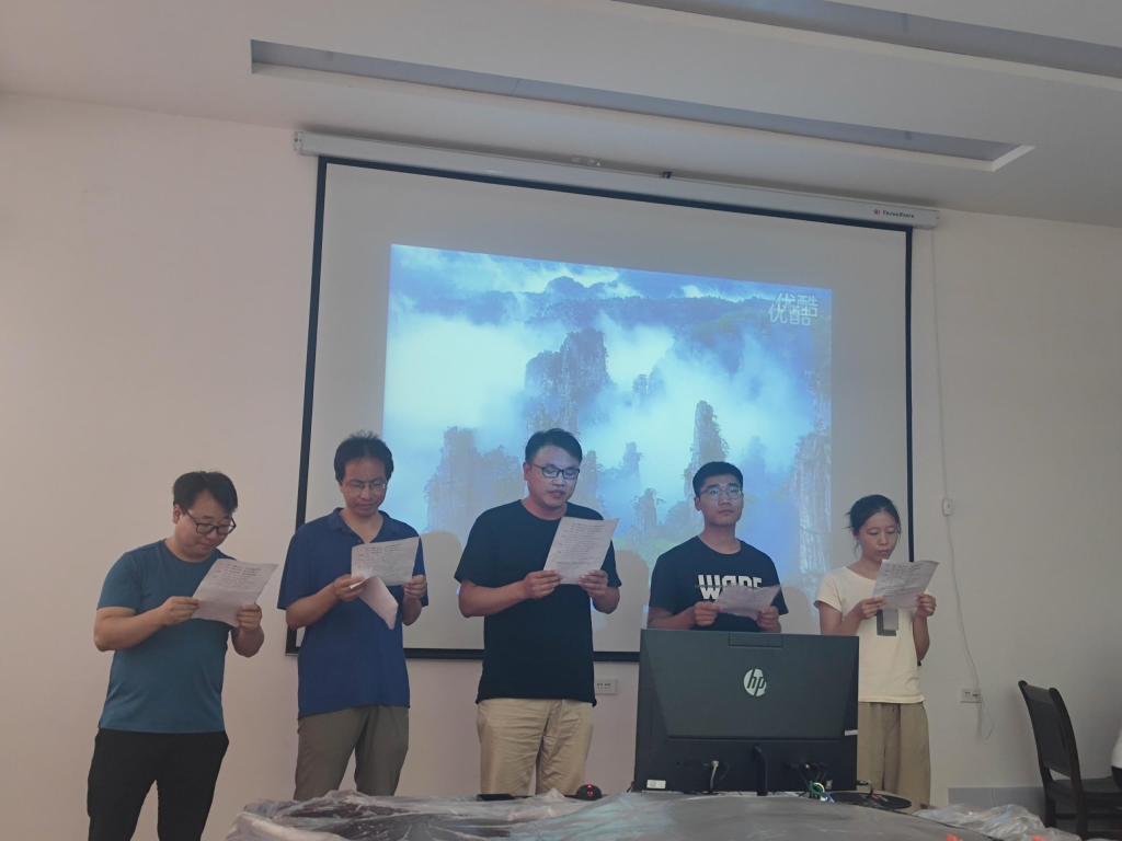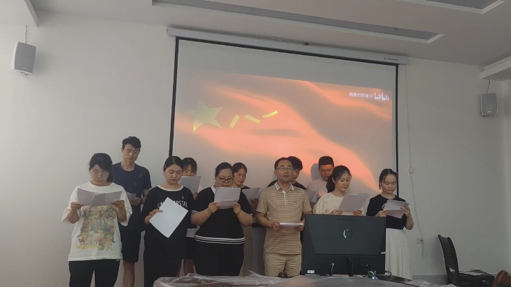 本次活动以朗诵、合唱等形式进行,丰富多样,精彩纷呈。活动开始前,公司党委书记杜留记从活动主题出发表达了对党和国家的热爱,同时希望公司做为一个大家庭能继续稳步向前,各位老师在自己的工作岗位上发光发热为祖国做贡献。随后,学工办用一支当下流行的毽子操《本草纲目》拉开了序幕,用积极阳光向上的精神面貌喜迎二十大胜利召开。之后,以工会小组为单位,老师们通过朗诵《二十大之歌》、《读中国》、合唱《我和我的祖国》等形式,饱含深情的表达了对党和国家的热爱。