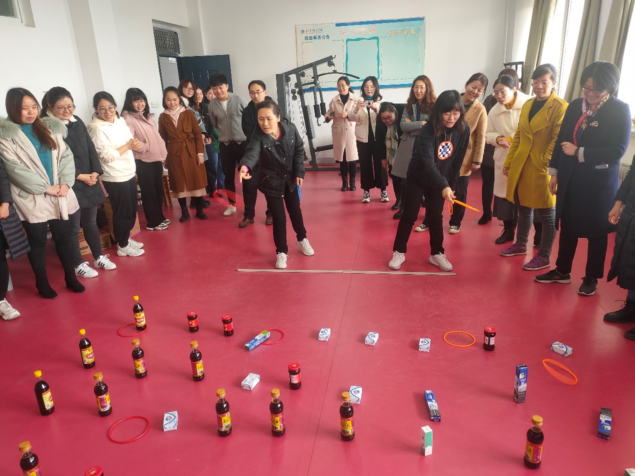 这次比赛趣味性十足,共有三个项目:趣味套圈,跳短绳,踢毽子。每个项目设一等奖1名,二等奖3名,三等奖5名。每个参赛的老师们为此次比赛也早已经做好了准备,一个个蓄势待发,精神抖擞,以饱满的热情和状态投入到比赛当中。经过激烈比拼,董燕飞 、杨瑞娟 分获踢毽子、跳绳项目的第一名。