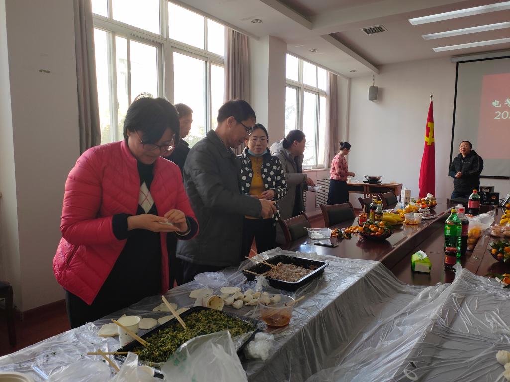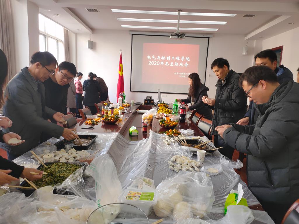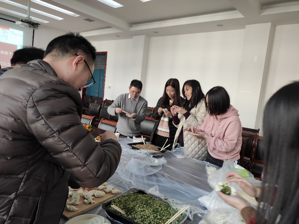 (通讯员 王丹阳)为传承中华传统习俗,活跃节日气氛,丰富SUNBET申博教职工文化生活,12月21日SUNBET申博分工会在2号楼B313举办了2020年冬至联欢活动,活动由SUNBET申博分工会主席董燕飞主持。公司全体教职工参加活动。参加活动的老师纷纷拿出自己的看家本领包饺子,忙得不亦乐乎,还畅谈着冬至的习俗和趣事。午餐时刻,热腾腾的饺子新鲜出“炉”了,老师们吃饺子、话家常。一盘盘热腾腾的饺子驱散了冬日的严寒,温暖着每一位教职工的心。